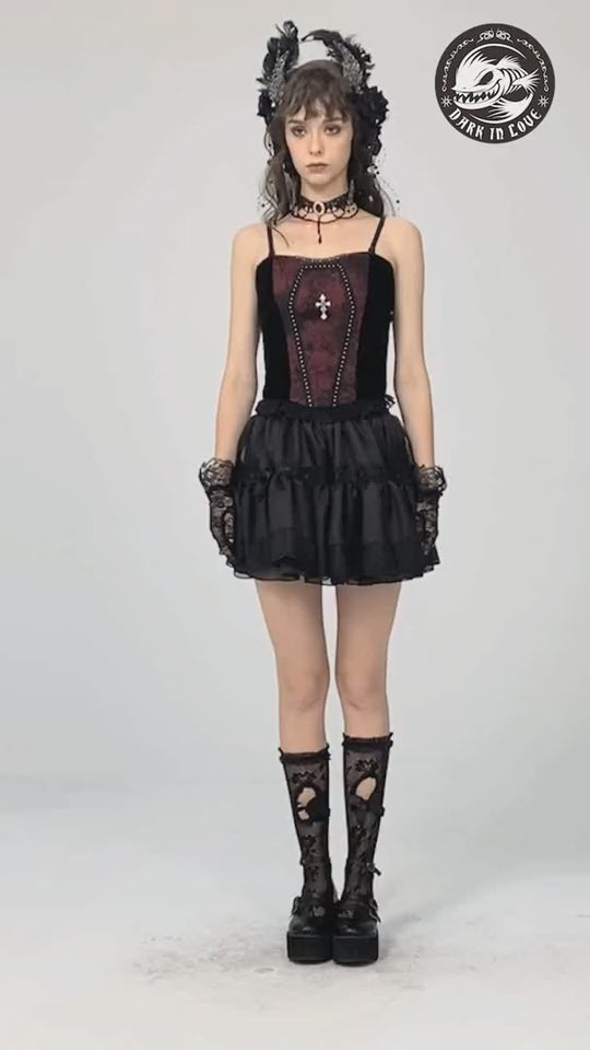 Découvrez notre top noir et rouge saisissant avec une croix argentée sur le devant, des bretelles et des lacets dans le dos pour un style gothique, alternatif et punk. Les bords sont ornés de dentelle, ajoutant une touche d'élégance. Ce top est confectionné avec une composition de haute qualité : 100 % polyester. Ne manquez pas l'occasion de vous démarquer avec cet article dans notre boutique de vêtements et accessoires gothiques, alternatifs et punk en ligne. Complétez votre look rebelle avec ce top accrocheur !