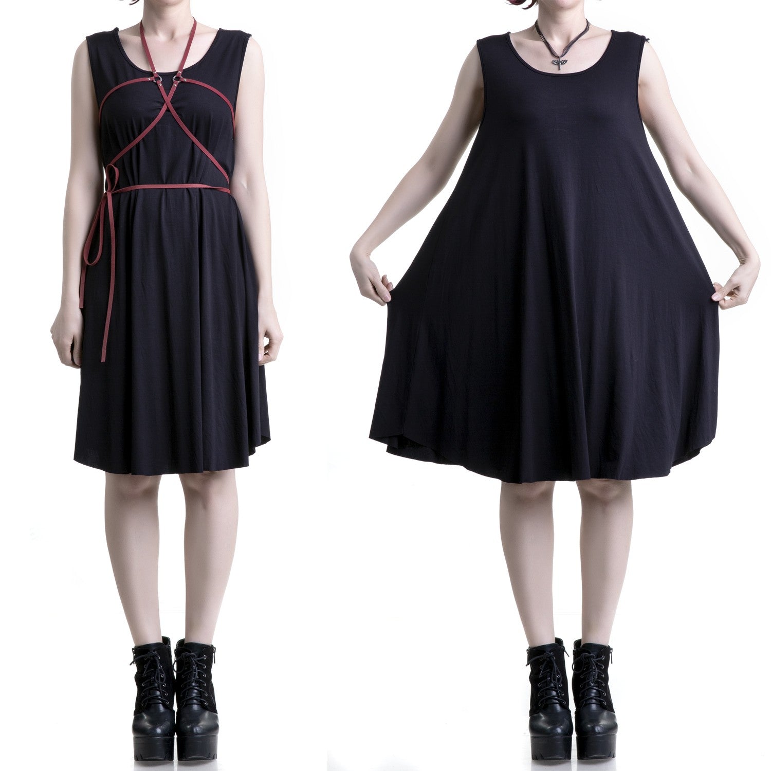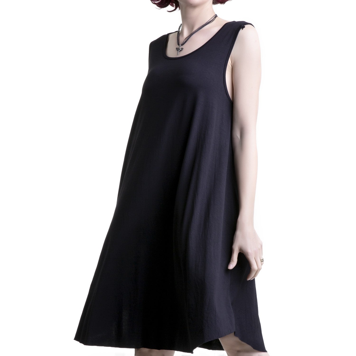 Robe ample et noire avec bretelles, conçue dans une silhouette large et confortable. Fabriquée en tissu élastique, elle s'adapte parfaitement au corps.