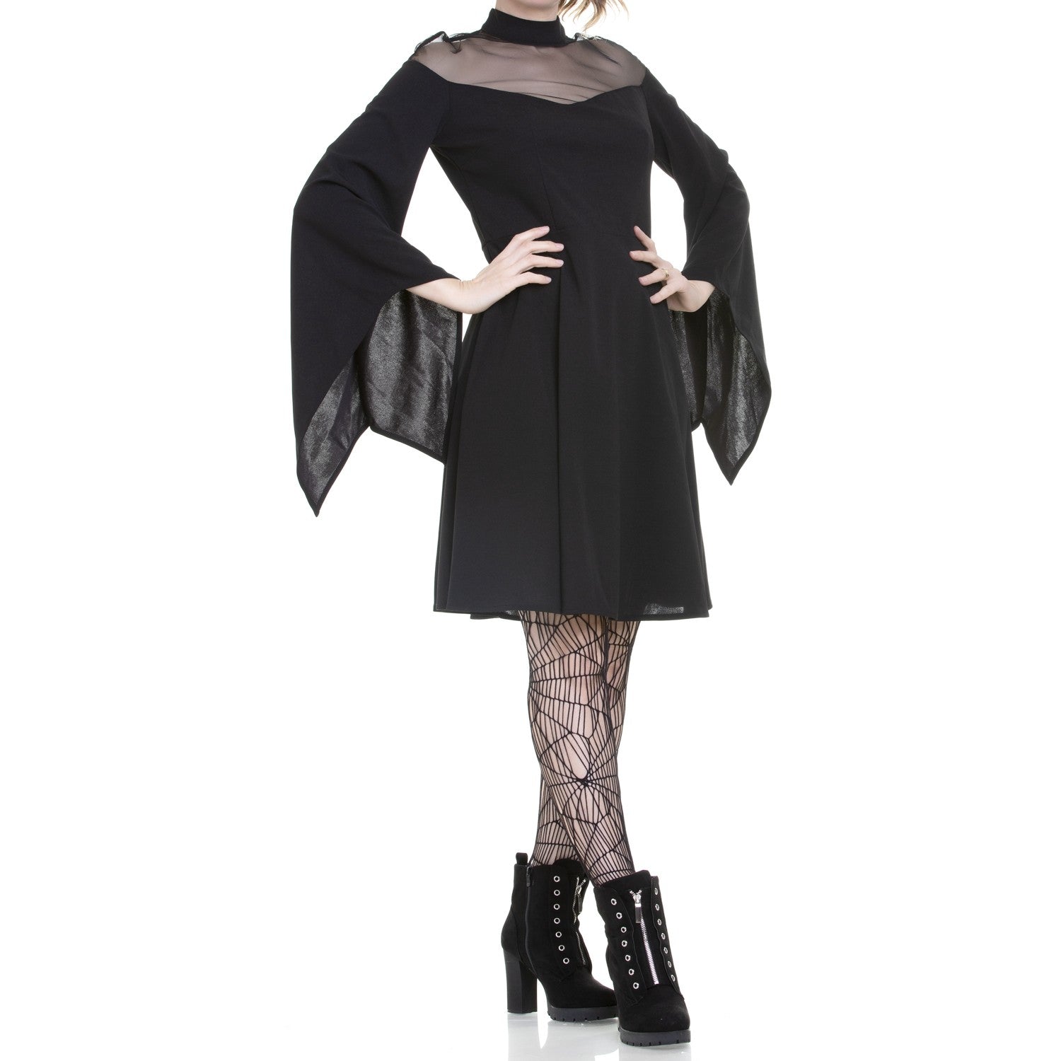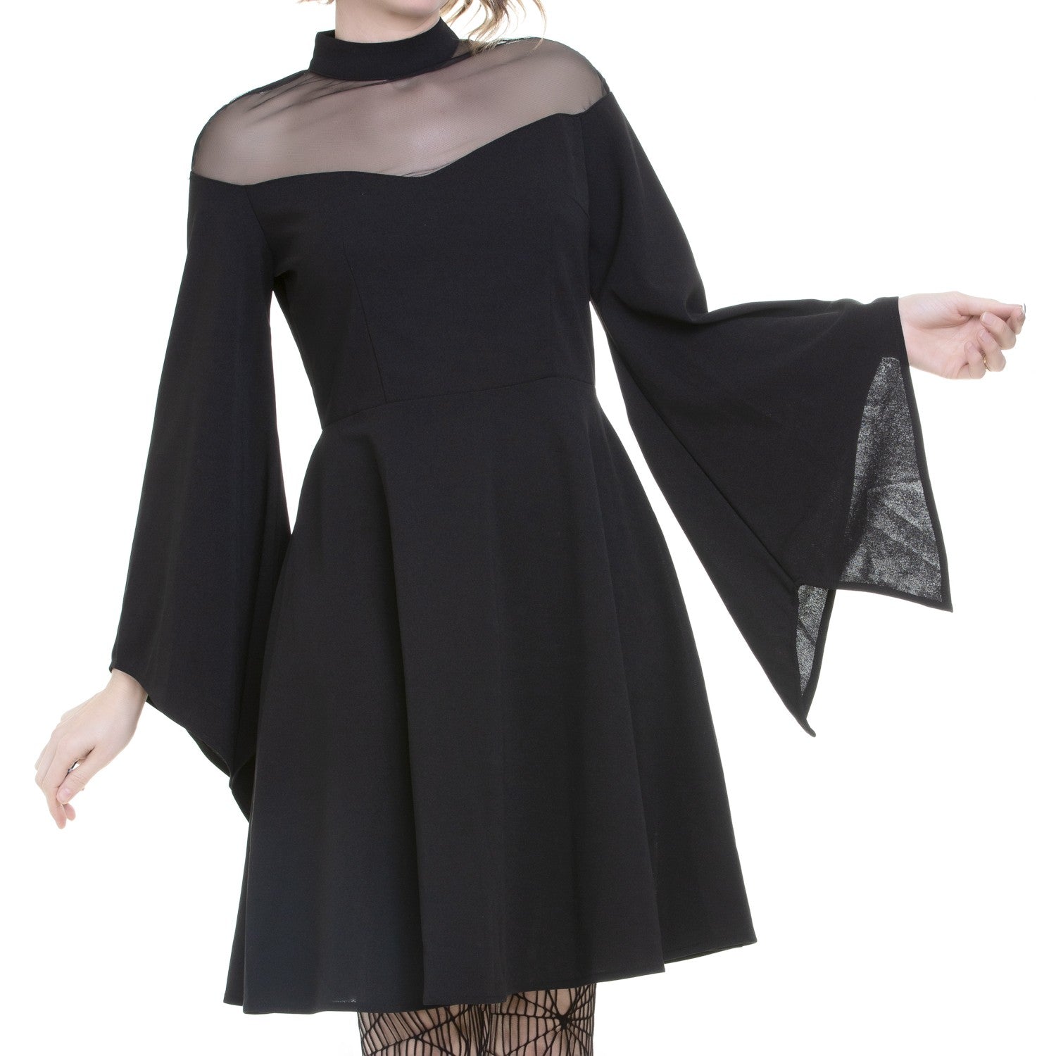 Si vous recherchez un style mystérieux et élégant, cette robe à manches cloche est parfaite pour vous. Avec un décolleté en tulle et des manches cloche, elle est idéale pour toutes les occasions.