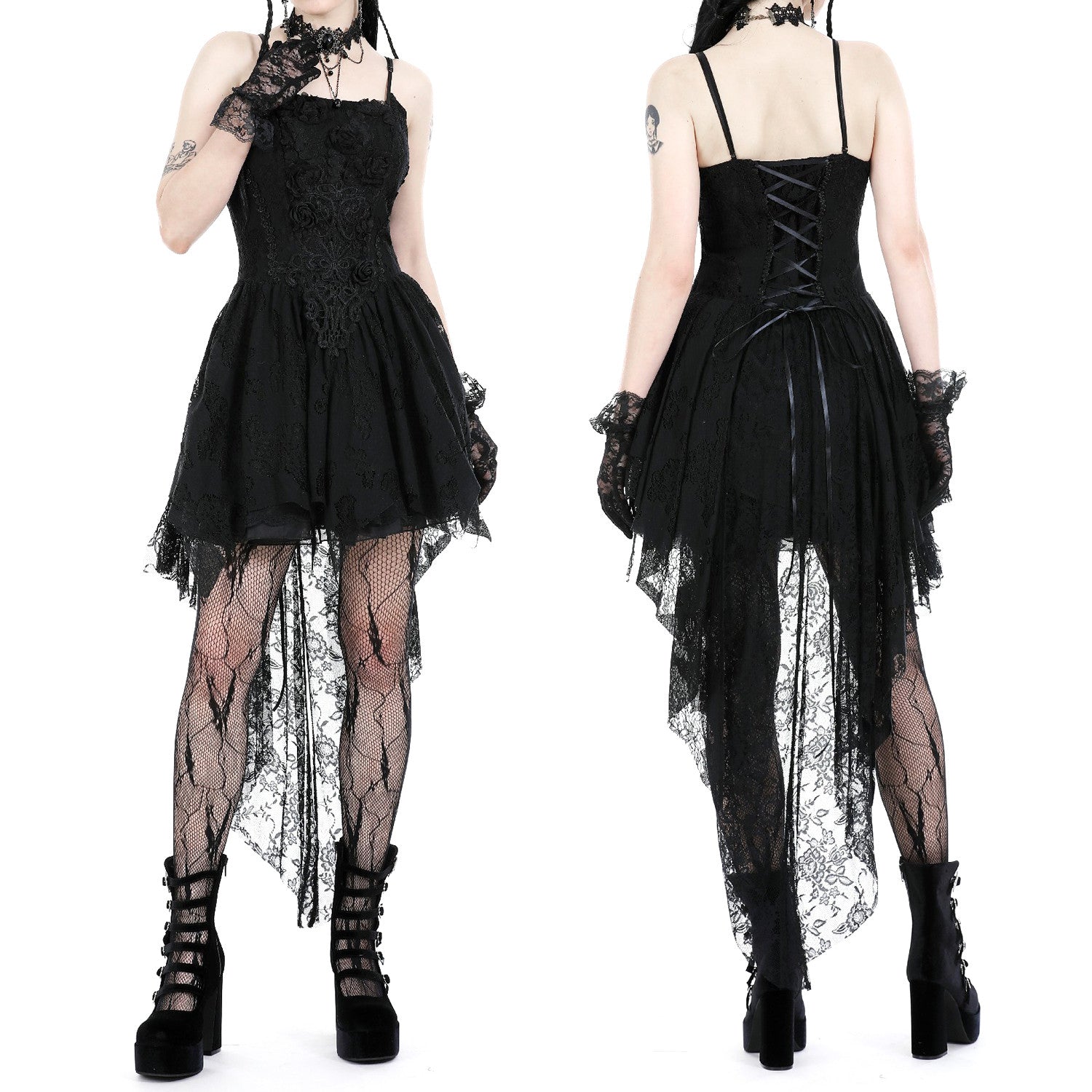 Plongez dans la sophistication avec notre robe élégante noire à bretelles ajustables. Courte à l'avant et longue à l'arrière, elle présente des motifs complexes de filigrane et de roses sur tout le tissu. Le dos est orné d'un laçage pour un ajustement personnalisé. Confectionnée avec un mélange de 40 % coton, 39 % nylon et 21 % rayonne, cette robe élégante allie confort et style. Sublimez votre look gothique, alternatif ou punk avec cette pièce unique. Découvrez-la dès maintenant dans notre boutique en ligne !