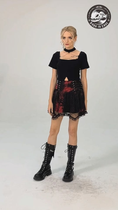 Ontdek onze opvallende korte rok in rood en zwart met gekruiste details en een laag tule met een spinnenwebdesign! Dit kledingstuk is perfect voor liefhebbers van gotische, alternatieve en punkstijl. De gekruiste details aan de zijkanten geven deze rok een unieke en gedurfde touch, terwijl de laag tule met spinnenwebdesign een fascinerend uiterlijk geeft. Het is gemaakt van hoogwaardig materiaal: 100% katoen, wat het comfortabel en duurzaam maakt. Mis de kans niet om deze rok aan je alternatieve collectie toe te voegen. Maak een modieuze statement met onze exclusieve korte rok in rood en zwart! Bezoek onze online winkel voor gotische, alternatieve en punkkleding en accessoires, en ontdek onze brede selectie van unieke en hoogwaardige kledingstukken.