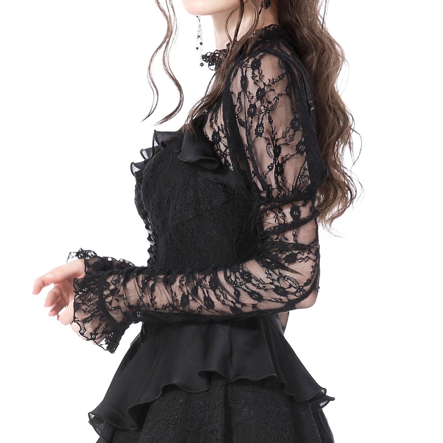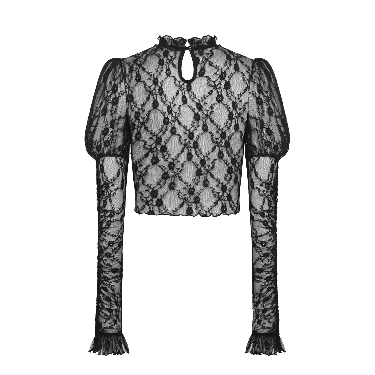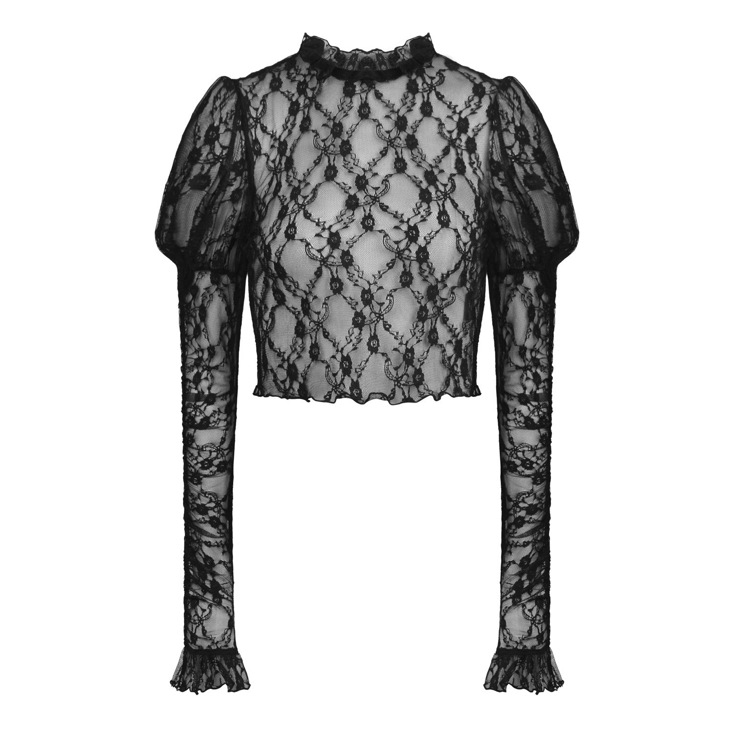 ¿Buscas una camiseta gótica, alternativa y punk para complementar tu look único? Nuestra camiseta negra de encaje corta y transparente es la elección perfecta. Con mangas largas y abombadas en los hombros, esta camiseta es una pieza imprescindible para cualquier armario alternativo. Hecha de 90% poliéster y 10% spandex, la camiseta se ajusta cómodamente al cuerpo y se adapta a tus movimientos. ¡Atrévete a destacar con esta prenda de moda alternativa!