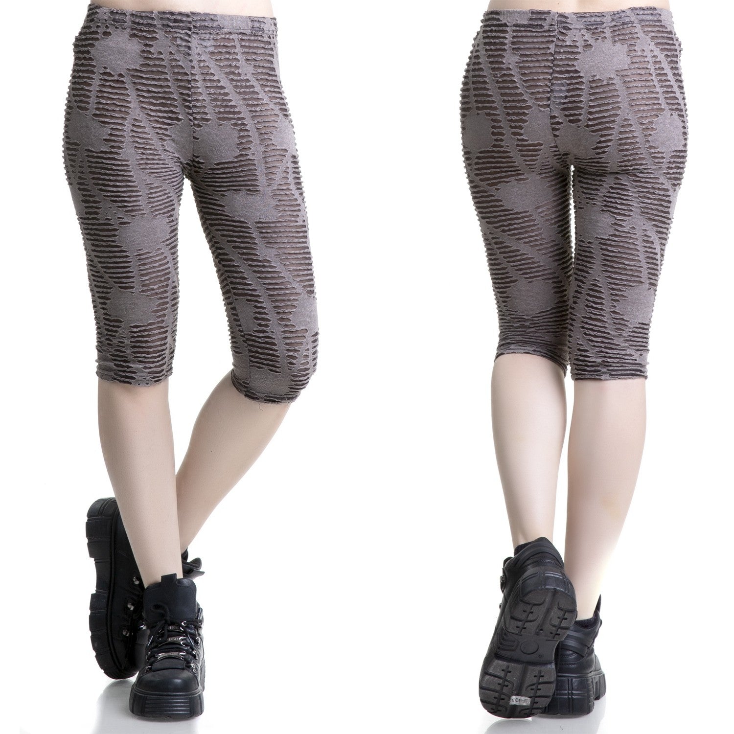 Legging semilargo marrón y transparente con diseño rajado.