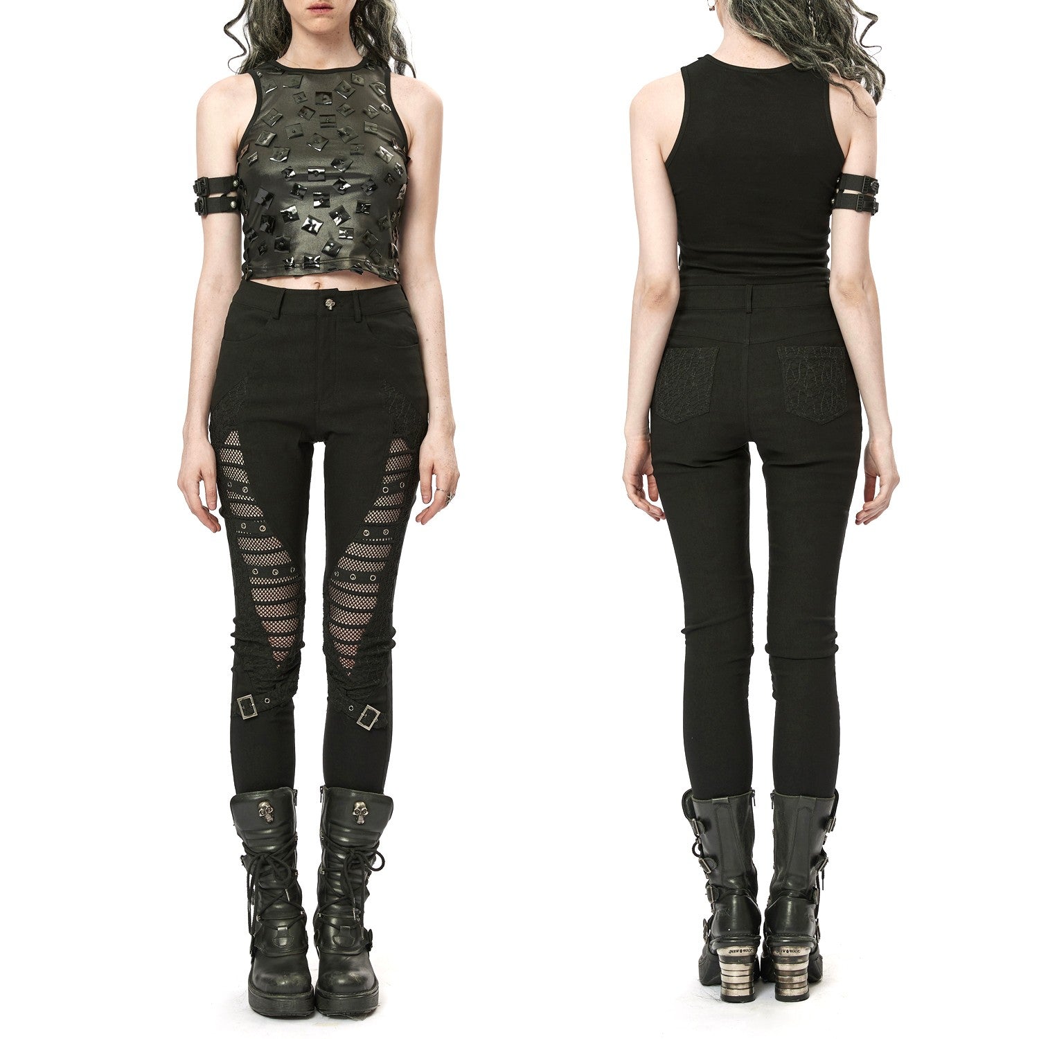 ¿Buscas un pantalón con rejilla negro elástico que además cuenta con hebillas decorativas en la parte delantera? Encuentra nuestro pantalón imprescindible en nuestra tienda en línea de ropa y accesorios góticos, alternativos y punk. Con una composición de viscosa, poliéster, poliamida y elastán, y forrado con 95% de poliéster y 5% de elastán para una mayor comodidad. Este pantalón con rejil es perfecto para crear un look atrevido y llamativo. ¡Haz que tu estilo destaque con este pantalón!