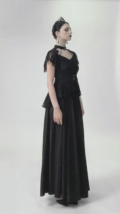 Top com alças cruzadas gótico, Dark in Love, design com detalhes em renda floral e uma silhueta favorecedora e dramática.