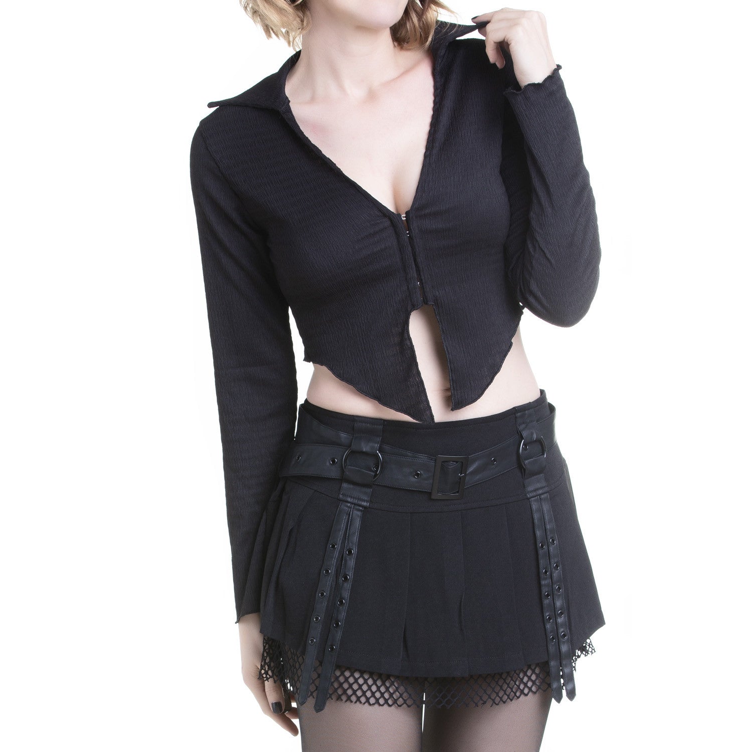 Explora a nossa exclusiva coleção online e descobre como esta t-shirt curta pode ser a peça-chave para realçar o teu estilo na cena gótica, alternativa e punk.