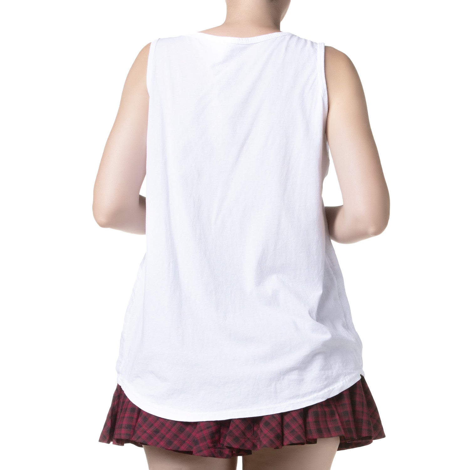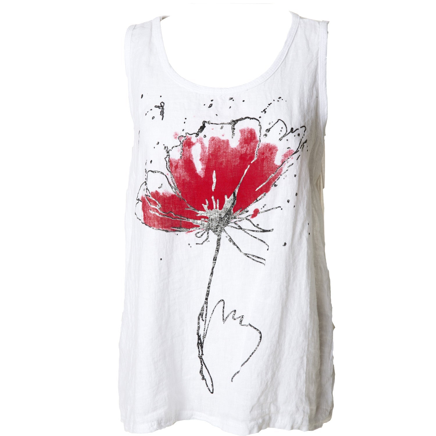 T-shirt de alças estampada, parte da frente em linho e a parte de trás em algodão, super confortável e de tecido agradável! 🌟