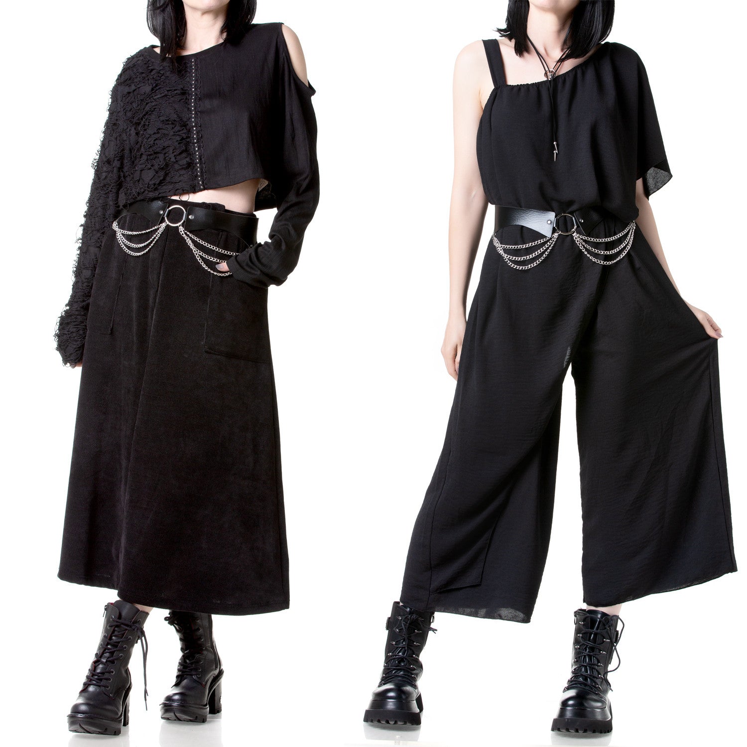 Adiciona um toque gótico ao teu estilo com este cinto preto decorado com correntes prateadas e um anel frontal. A fivela ajustável na parte de trás assegura um ajuste perfeito. Mede 85 cm de comprimento, ideal para realçar a tua cintura. Medidas da modelo: 86-72-100 cm, altura: 170 cm.