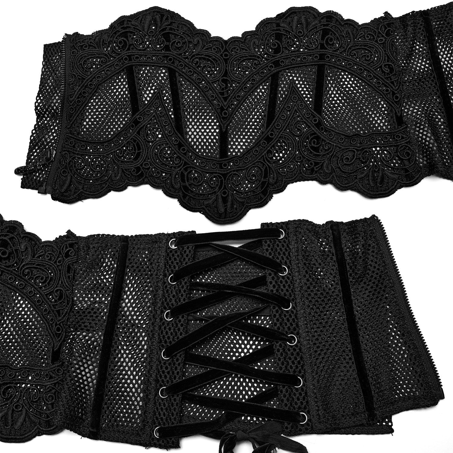 Realce o seu estilo alternativo com o nosso corpete elegante de rede abaixo do peito. Apresenta atacadores cruzados nas costas e um fecho de correr lateral para um ajuste perfeito e confortável. Fabricado com 100% poliéster, este corpete elegante de rede abaixo do peito não só oferece um aspeto único, mas também conforto durante todo o dia.