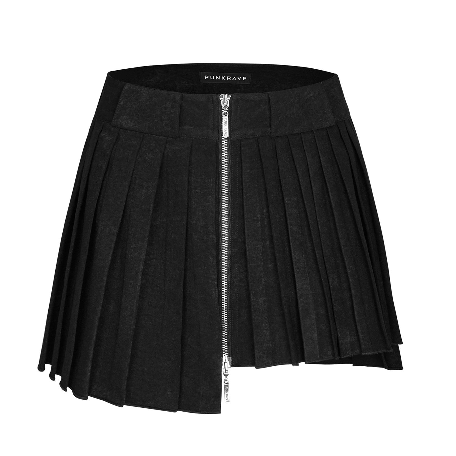 Saias preta, curta e assimétrica com um fecho éclair à frente.