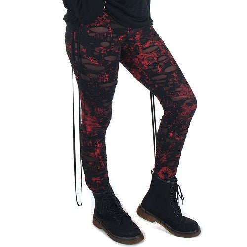 Legging preto rachado com tule, tingido de vermelho. Um legging original e único.