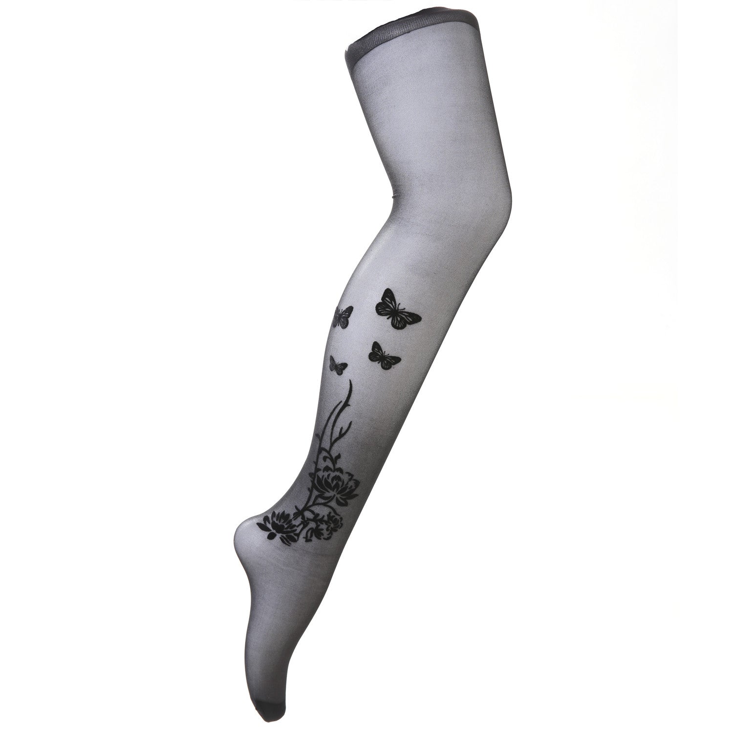 Meias pretas com desenhos de borboletas em veludo. 🦋