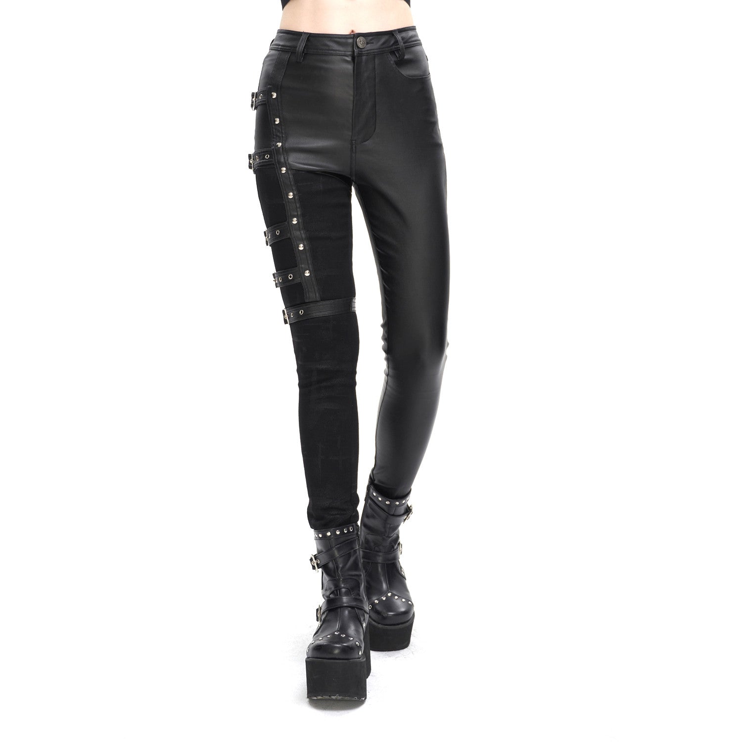 Destaque-se com estas calças assimétricas com fivelas numa perna e bolsos funcionais. A combinação de tecido brilhante com uma perna mais opaca adiciona um toque único ao seu estilo alternativo. Este calças assimétricas com fivelas são confeccionadas com uma mistura de 55% rayão, 30% algodão, 10% poliamida e 5% spandex para proporcionar conforto e flexibilidade.