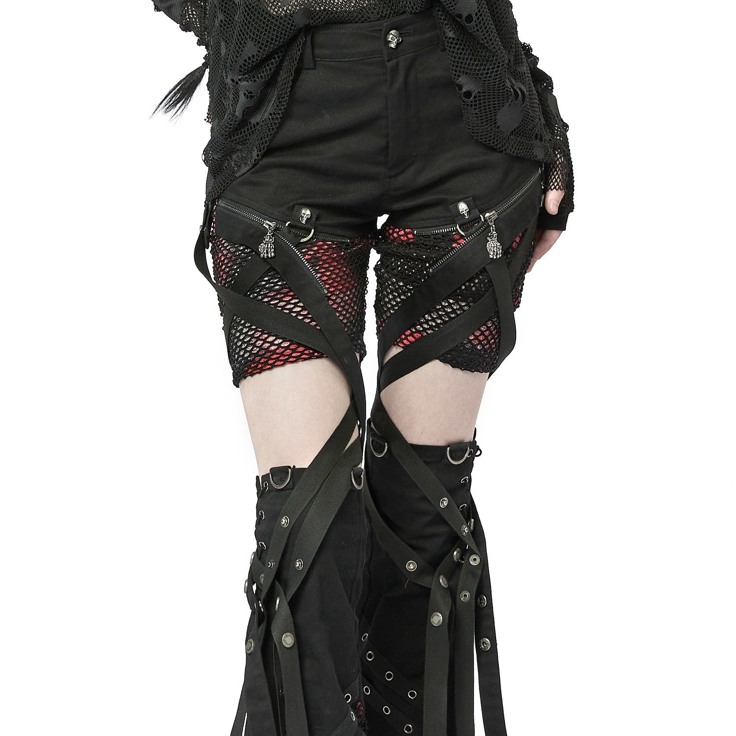Se procuras um visual arrojado e único, os nossos calções de rede vermelhos e pretos são exatamente o que precisas. Com aquecedores que podem ser ligados aos calções por tiras pretas, este design é perfeito para os amantes da moda gótica, alternativa e punk que procuram um estilo distintivo. Feitos de uma combinação de poliéster, poliamida e elastano, estes calções são confortáveis e duradouros. Além disso, têm um forro 100% algodão para maior conforto e respirabilidade. Encontra este design na nossa loja online de roupa e acessórios. Faz já a tua encomenda e destaca o teu estilo!
