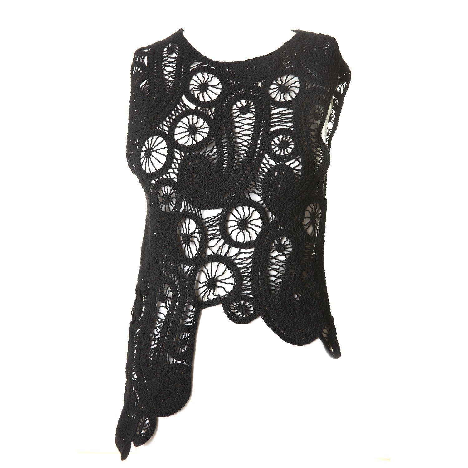 Top sem mangas de guipura calado com design assimétrico design único.