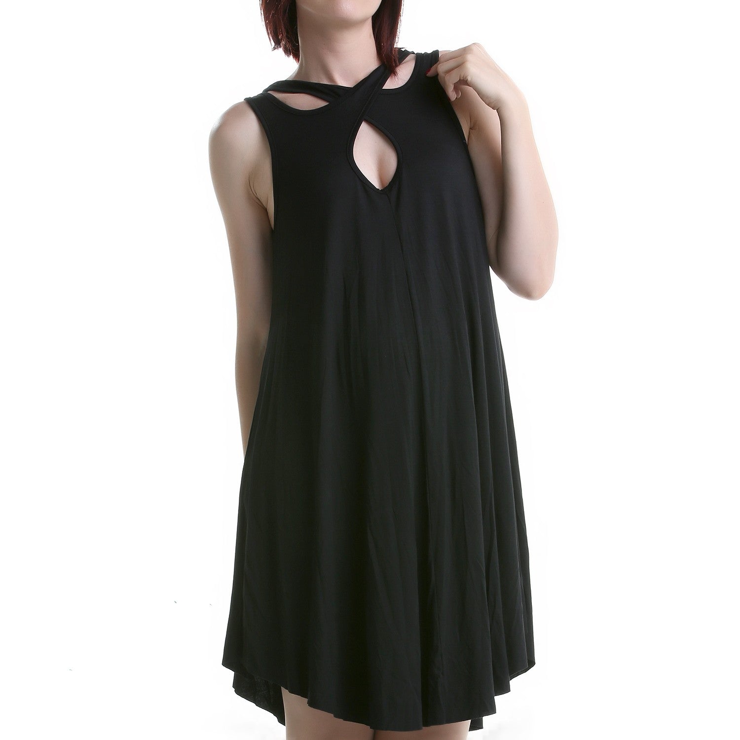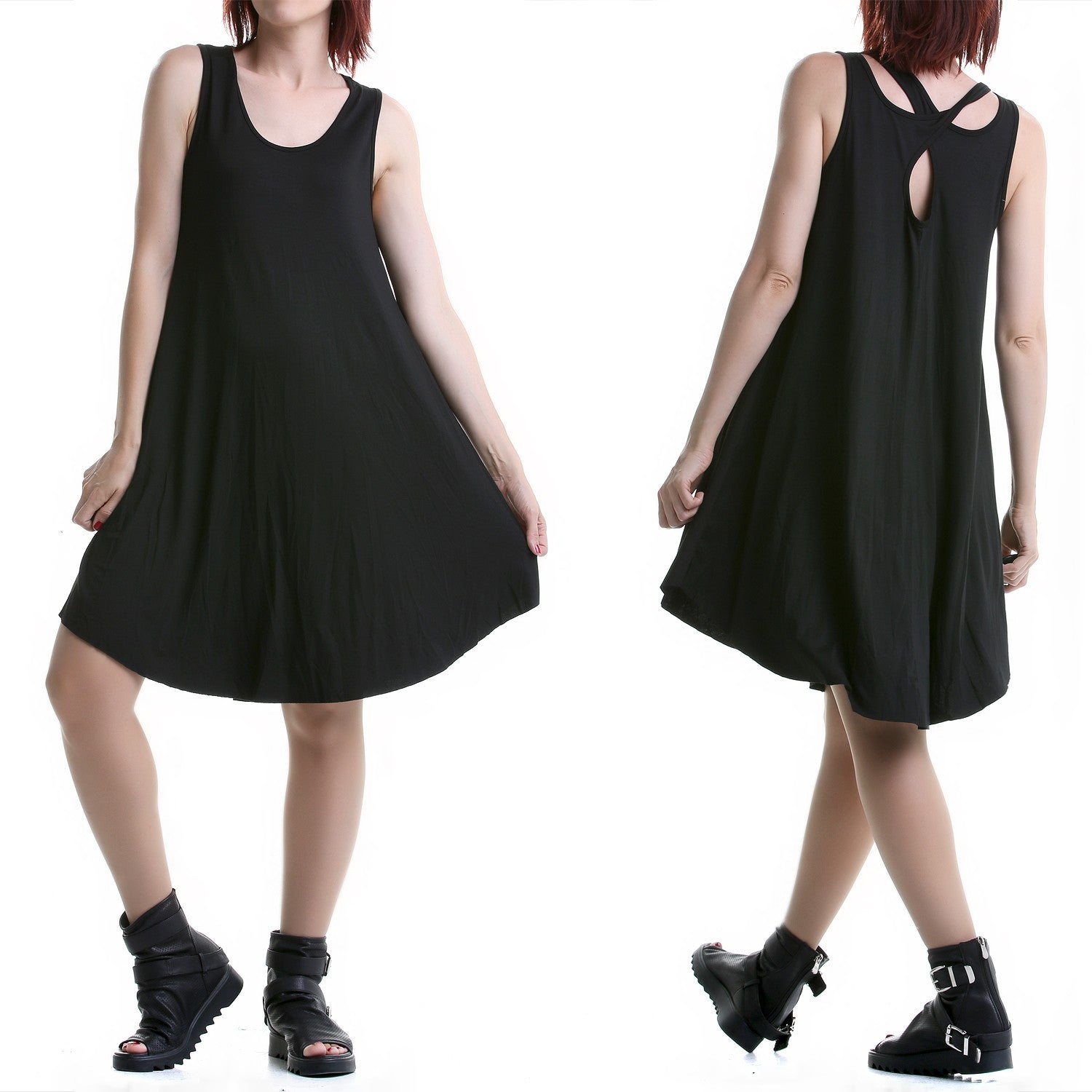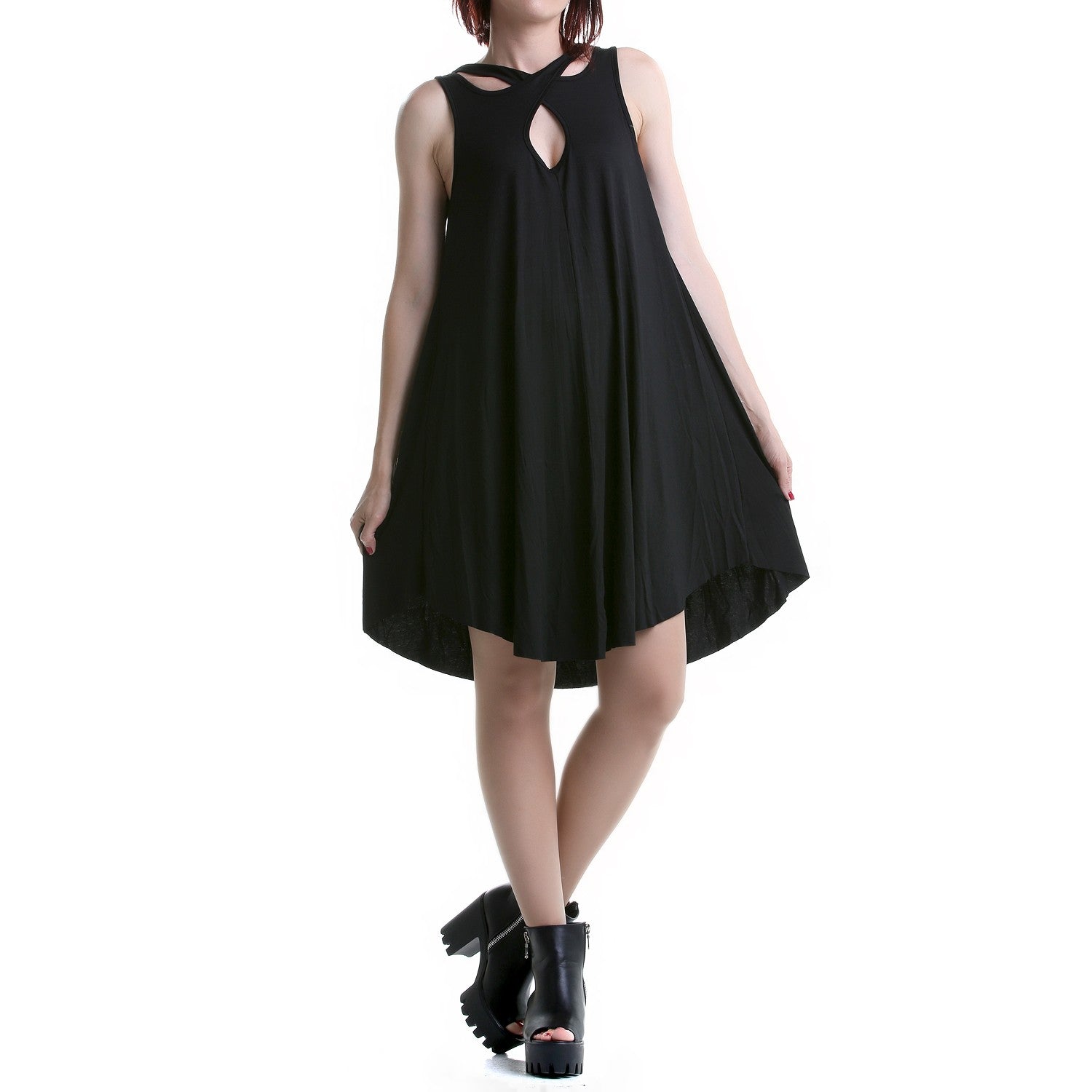 Vestido com alças cruzadas preto e elástico. O lado das alças cruzadas pode ser usado na frente ou atrás.