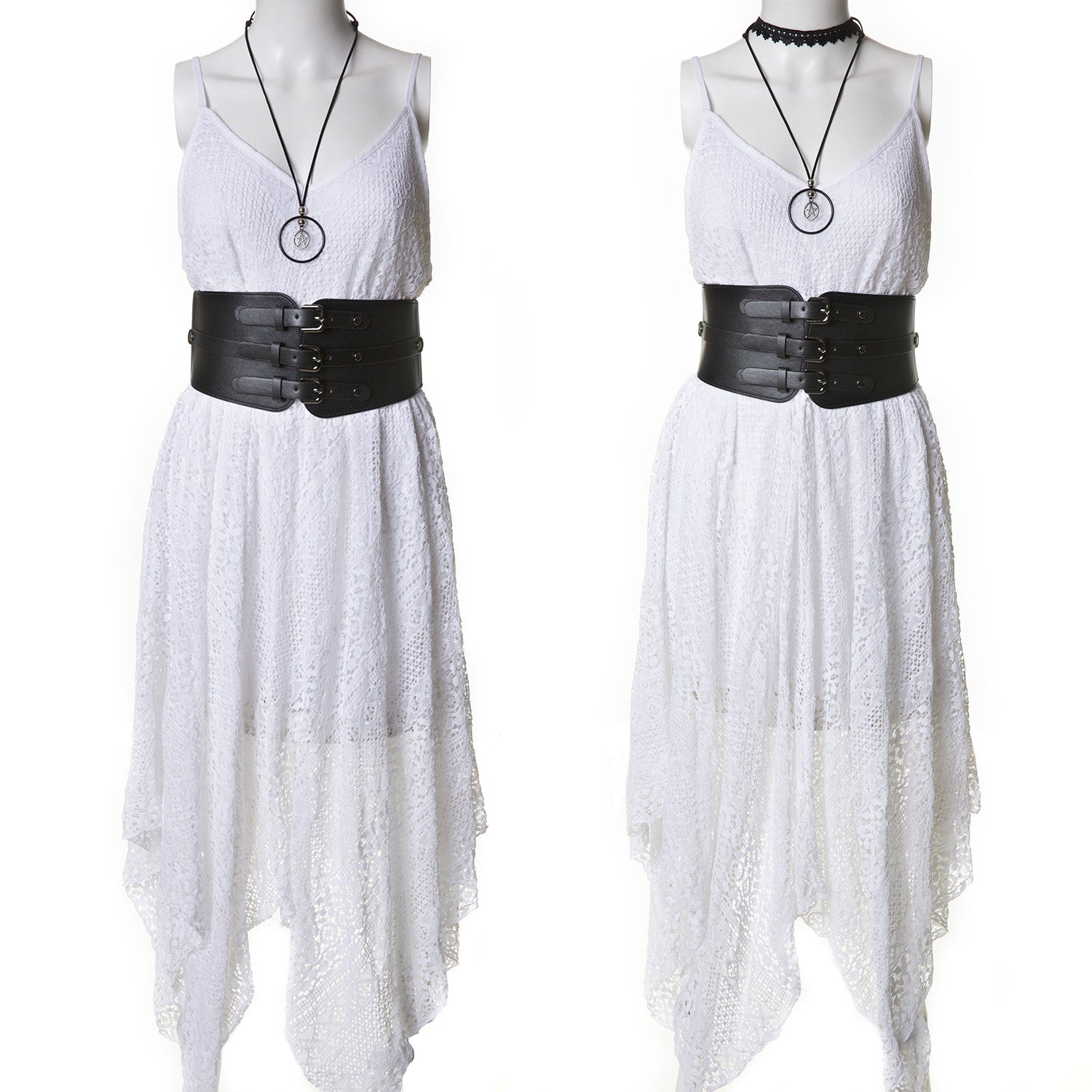 Descobre o nosso elegante vestido longo branco com alças, adornado com uma camada de guipura. Feito de tecido muito elástico para um ajuste perfeito e confortável. Ideal para completar o teu look gótico e alternativo com estilo e sofisticação.