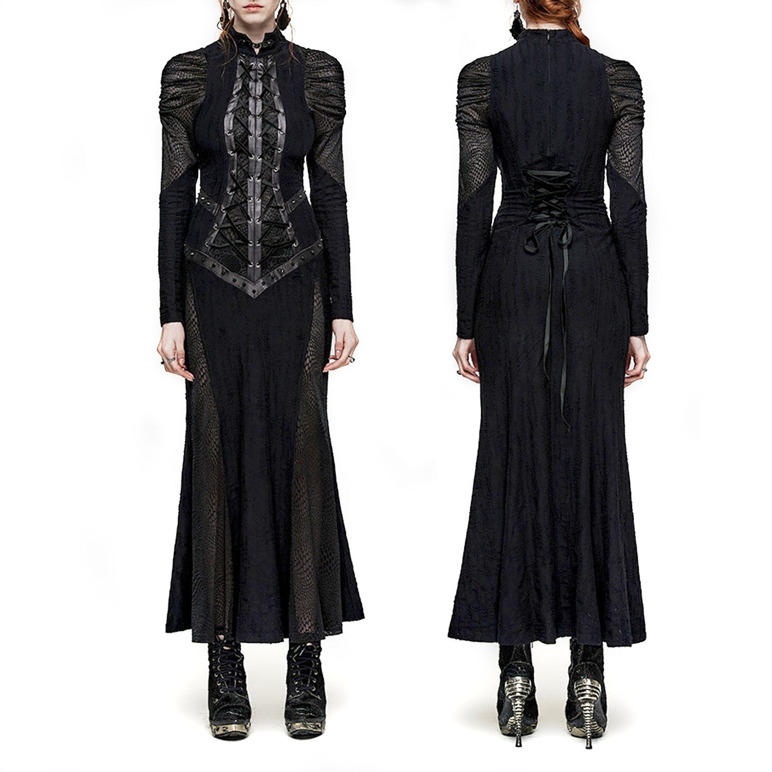 Faça uma declaração de moda alternativa com este vestido longo preto perfeito para a cena gótica, alternativa e punk. Adicione um toque de glamour sombrio ao seu guarda-roupa hoje mesmo!