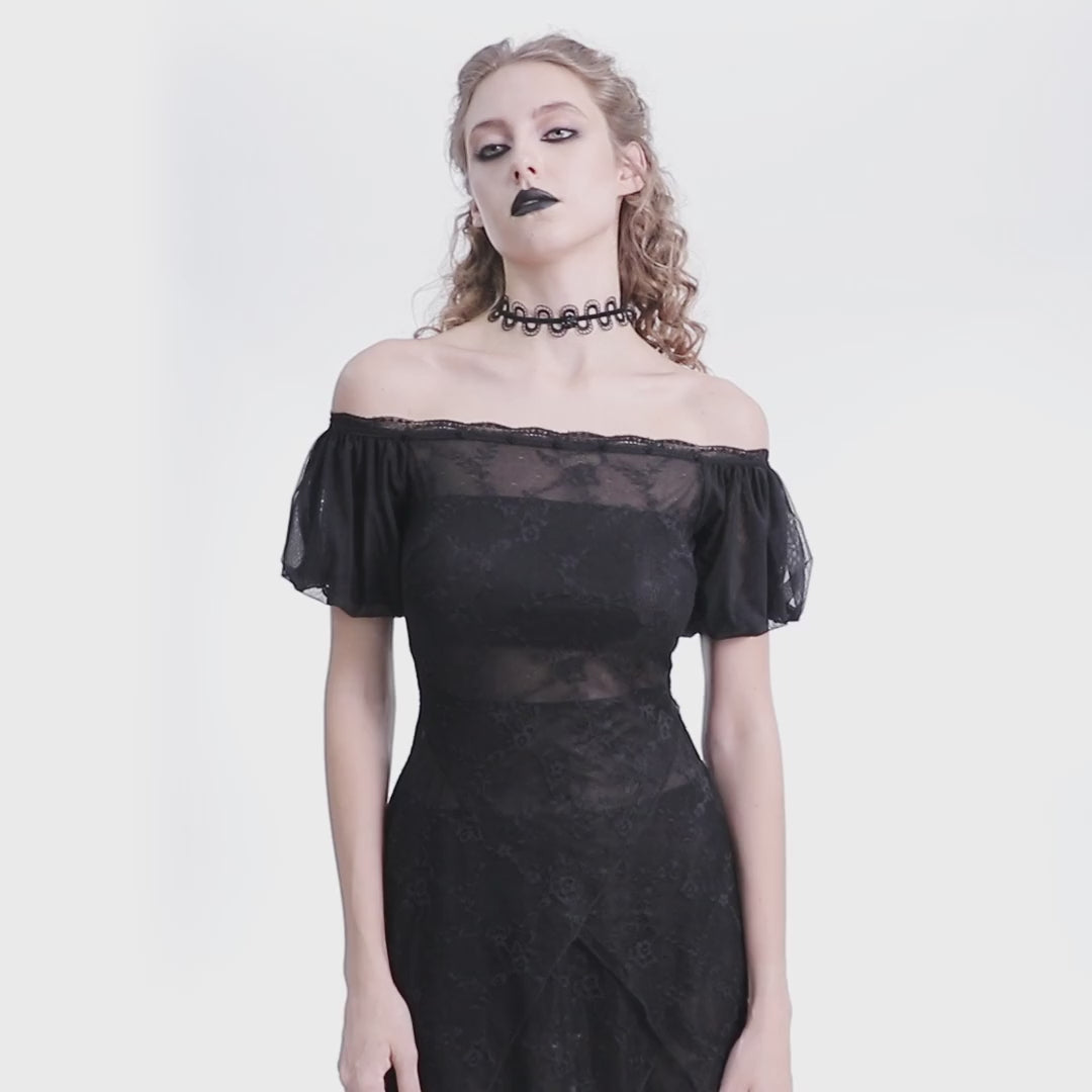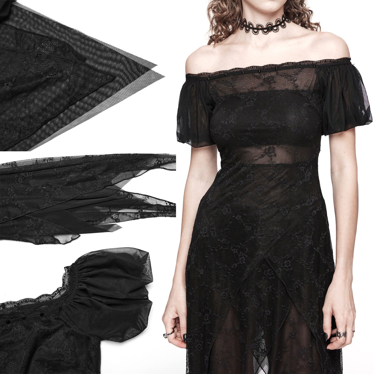 Vestido transparente negro de renda com mangas curtas. Este design elegante e leve é perfeito para o verão, proporcionando uma aparência sofisticada e fresca. Ideal para qualquer ocasião casual ou para uma saída noturna nos dias quentes. Este vestido transparente é confeccionado com uma mistura de materiais que incluem poliamida e elastano.